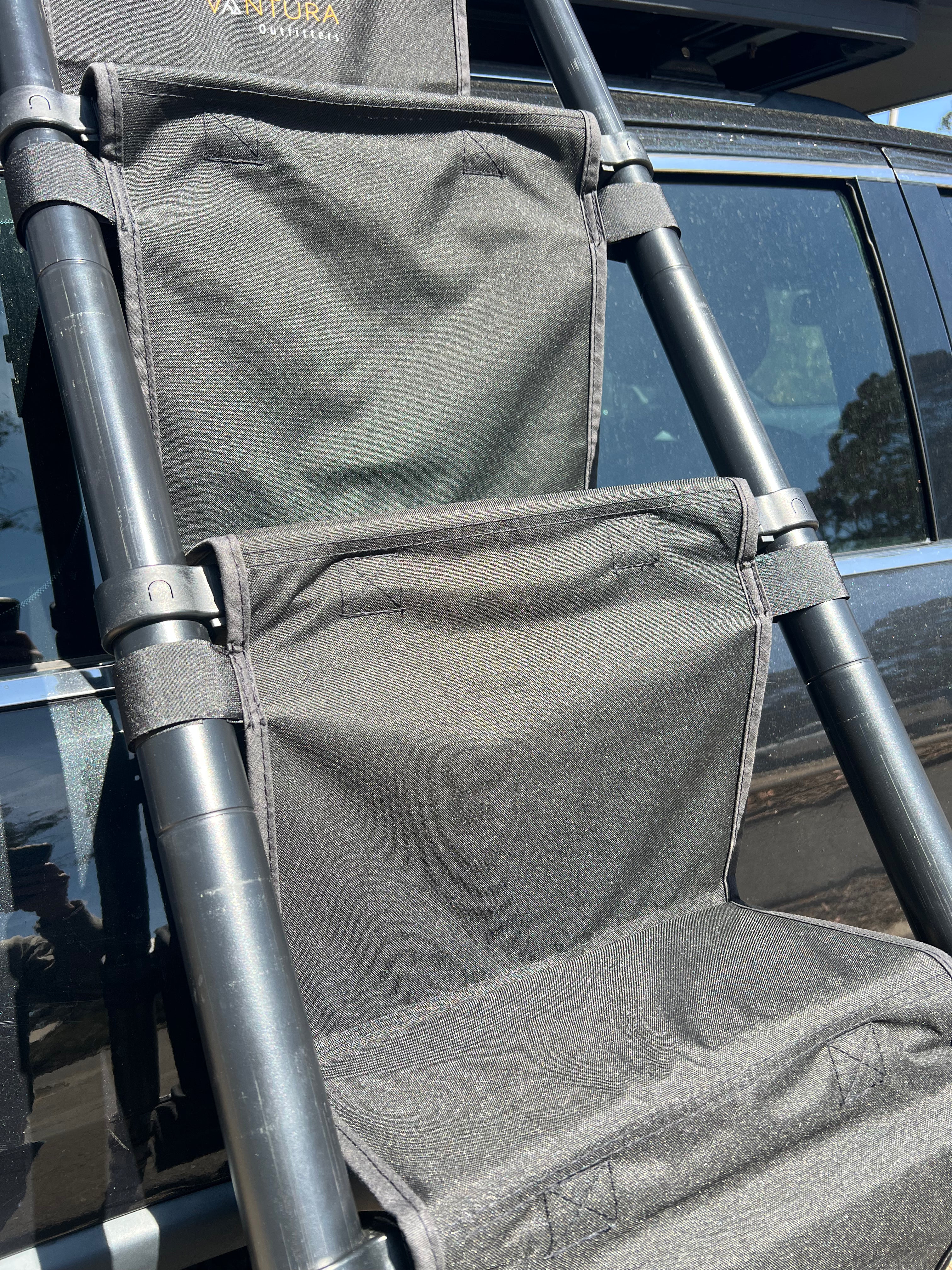 Designed for Vantura Outfitters rooftop tents and telescoping ladders (fit with other brands not guaranteed).