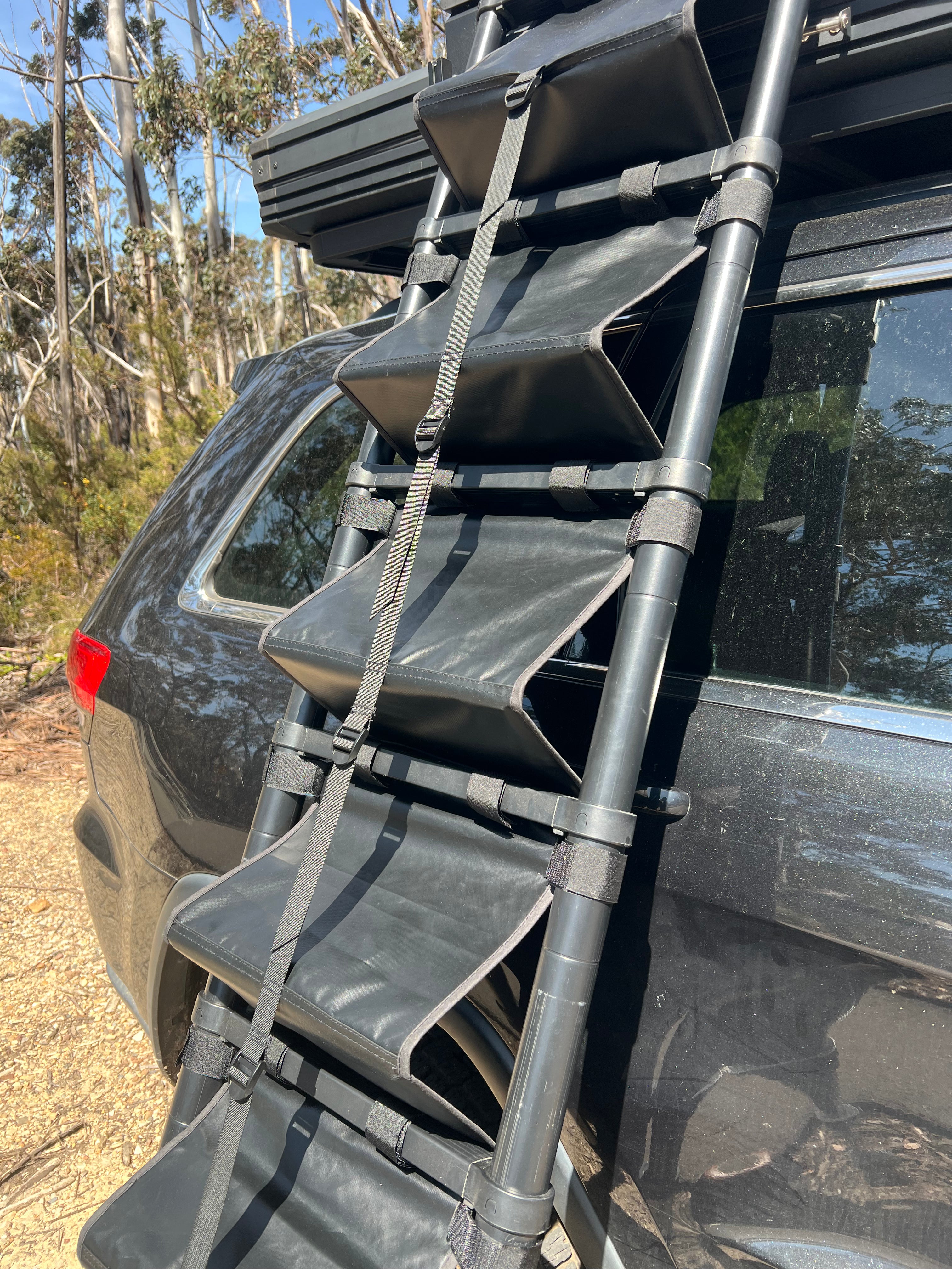Take your rooftop tent experience to the next level with the all-new V3 RTT Ladder Steps. Redesigned with extra features and tougher materials, this latest version is lighter, stronger, and smarter â built to make climbing easier for campers and pets alike.